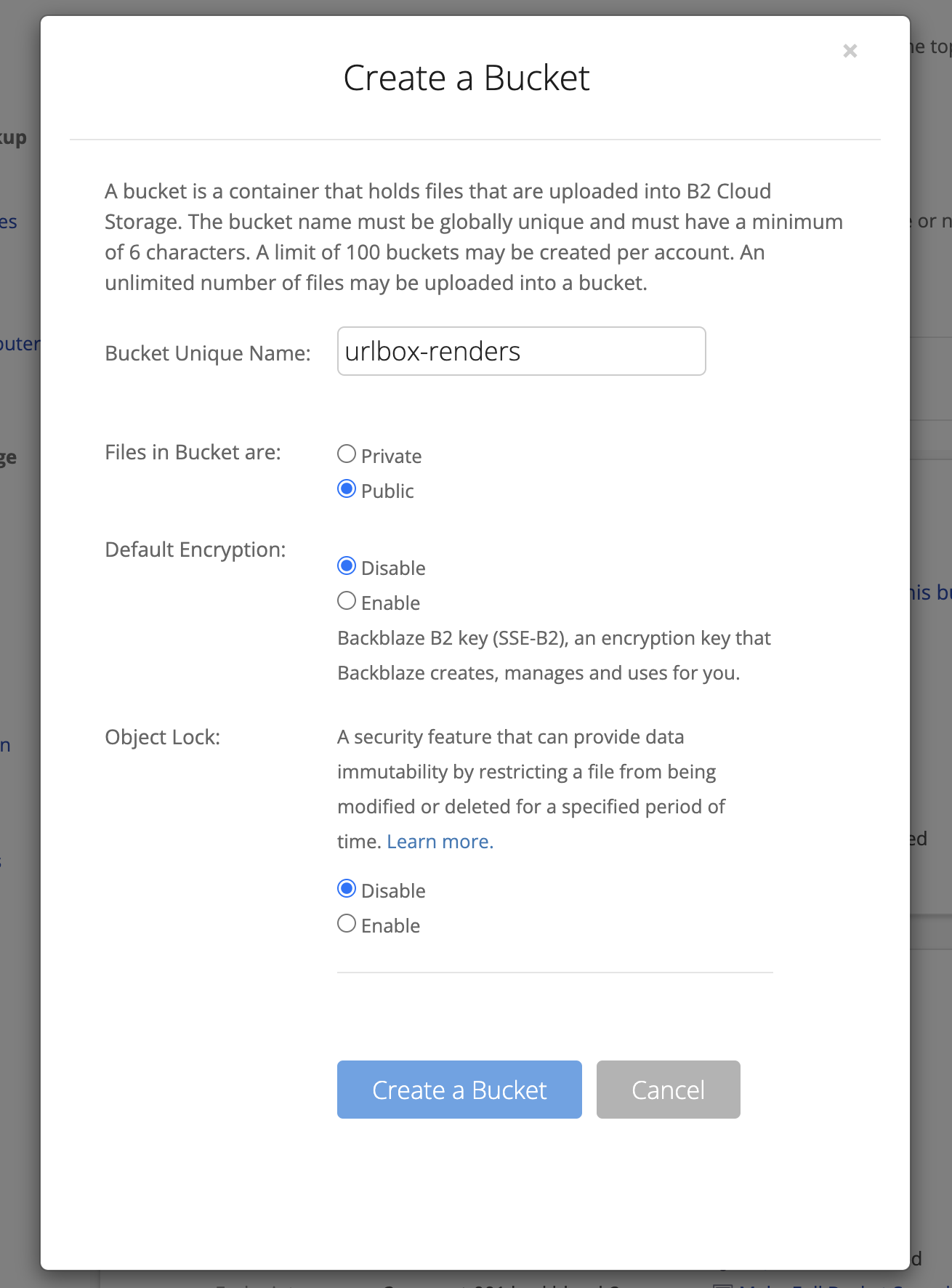 Create Backblaze B2 Public Bucket