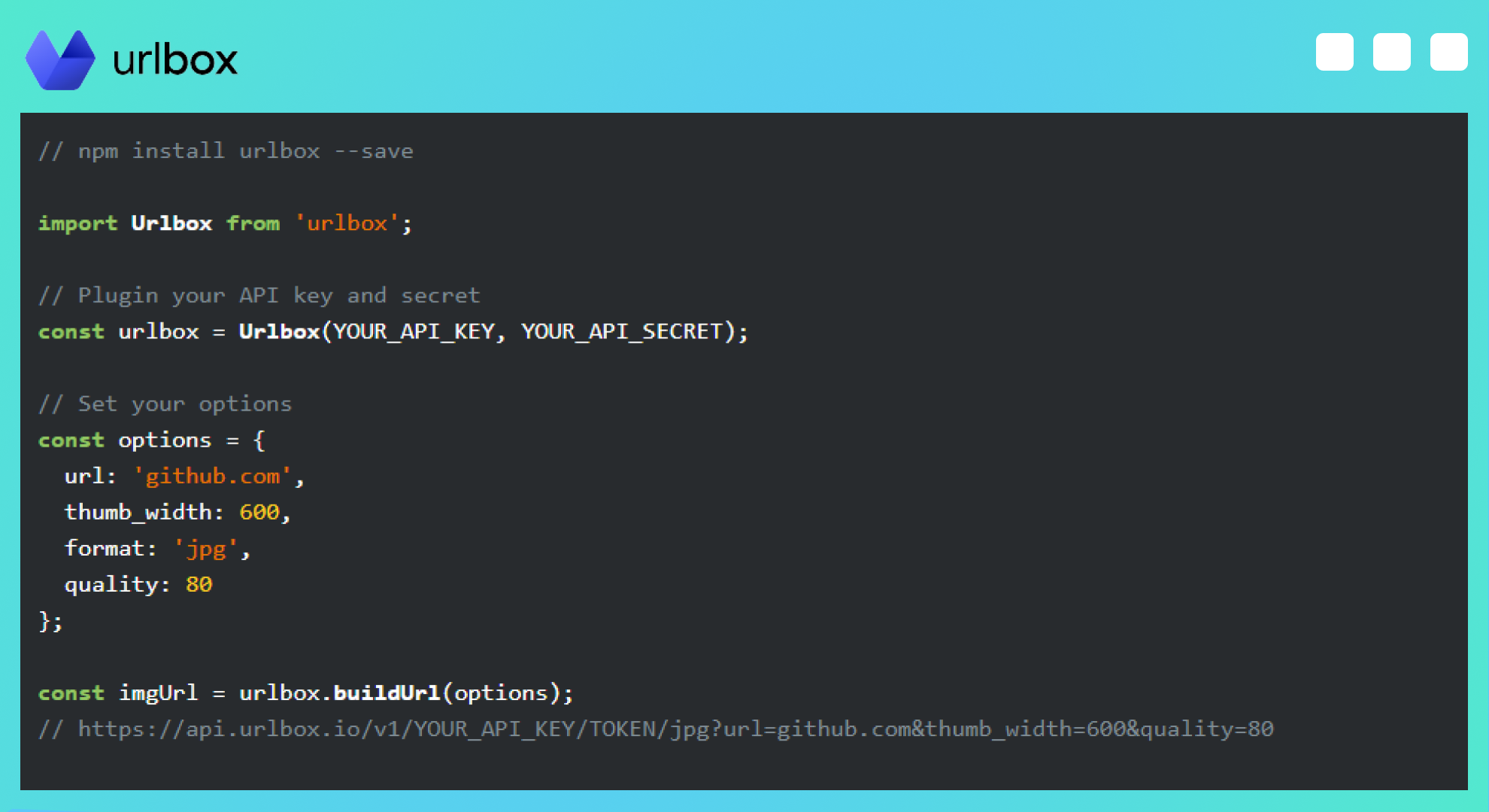 Urlbox then returns an image of that URL in whatever format you prefer. This can be done through a simple HTTP GET request.