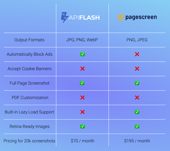 If capturing web screenshots at scale is a critical part of your project or business, you might be using ApiFlash for its straightforward functionality. But as your volume of screenshots grows, you may find yourself in need of more advanced features or a more cost-effective solution.