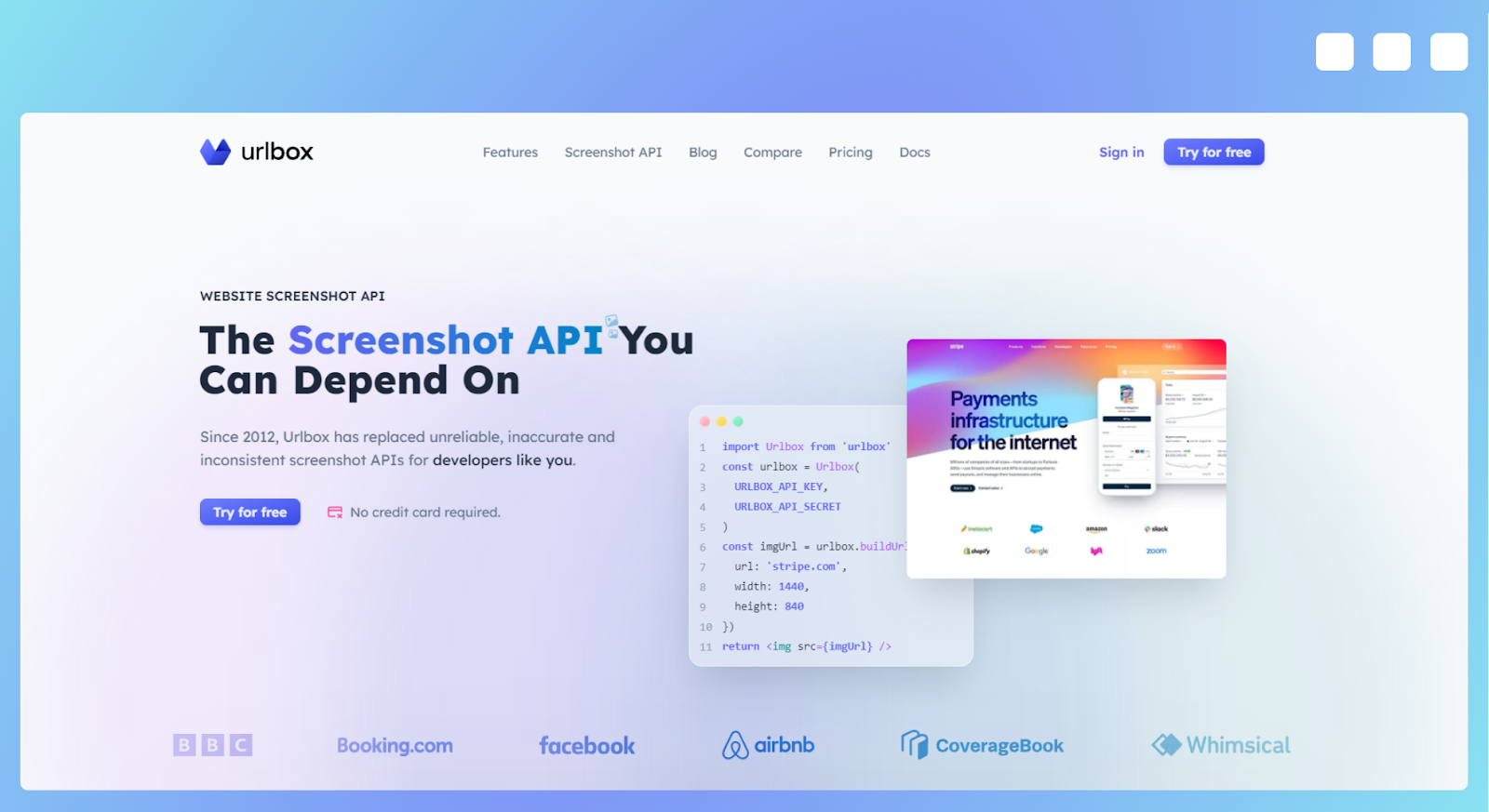 Compared to Browshot, Urlbox focuses on user experience and ease of use. While both tools offer a wide range of features, Urlbox provides more options for customization and control over the screenshot process. Its ability to capture specific elements on a page using a CSS selector is unique among other alternatives in this list. This makes Urlbox suitable for developers who need more control and flexibility when capturing screenshots.