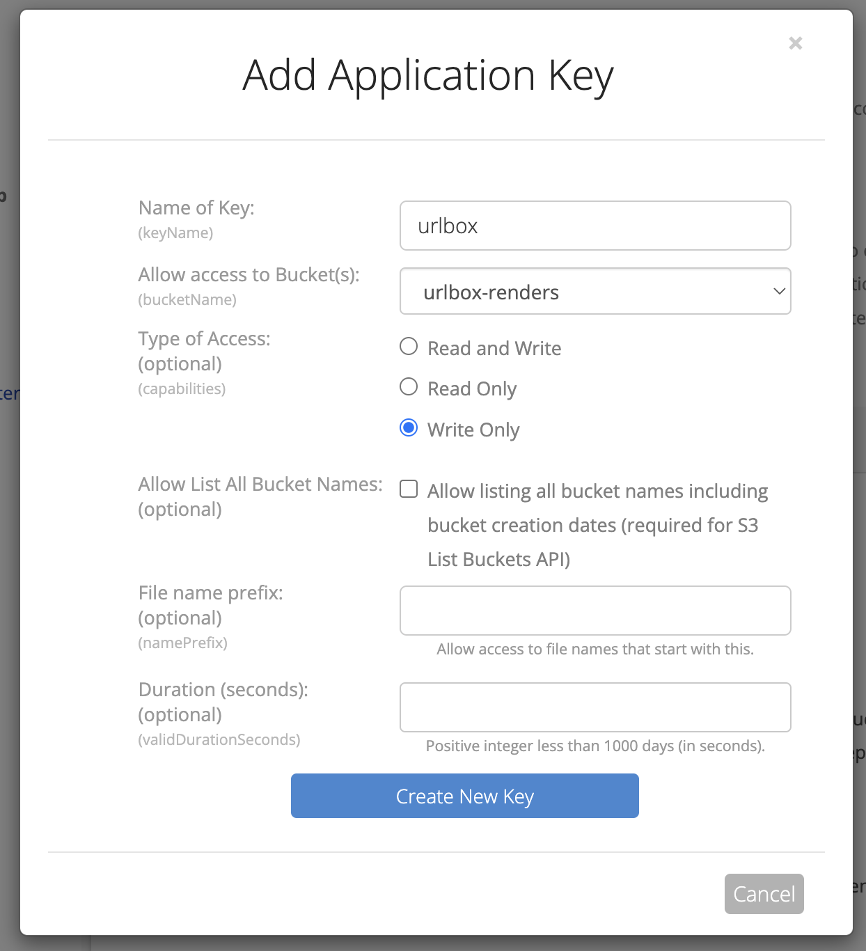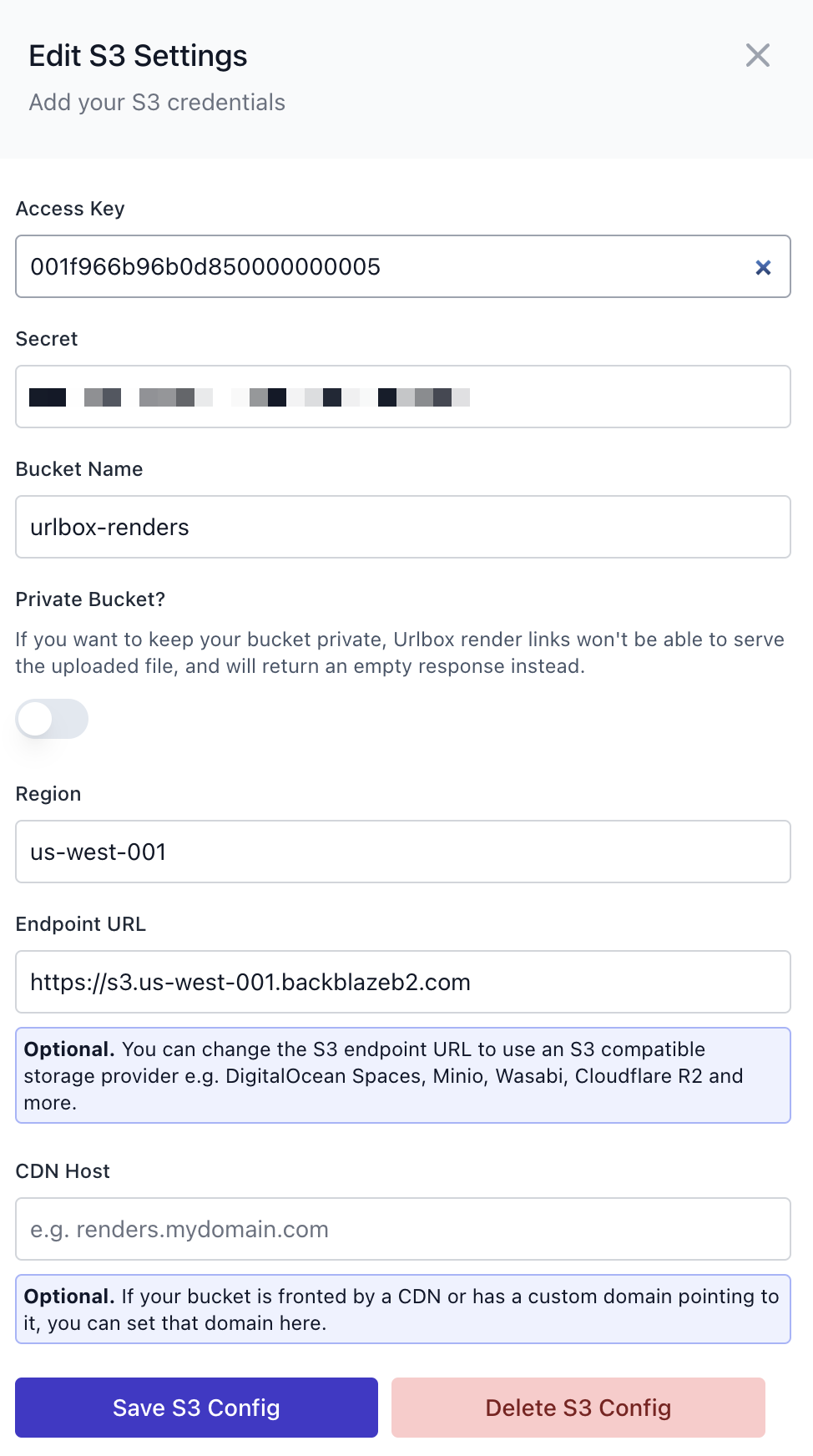Add Backblaze B2 credentials to Urlbox