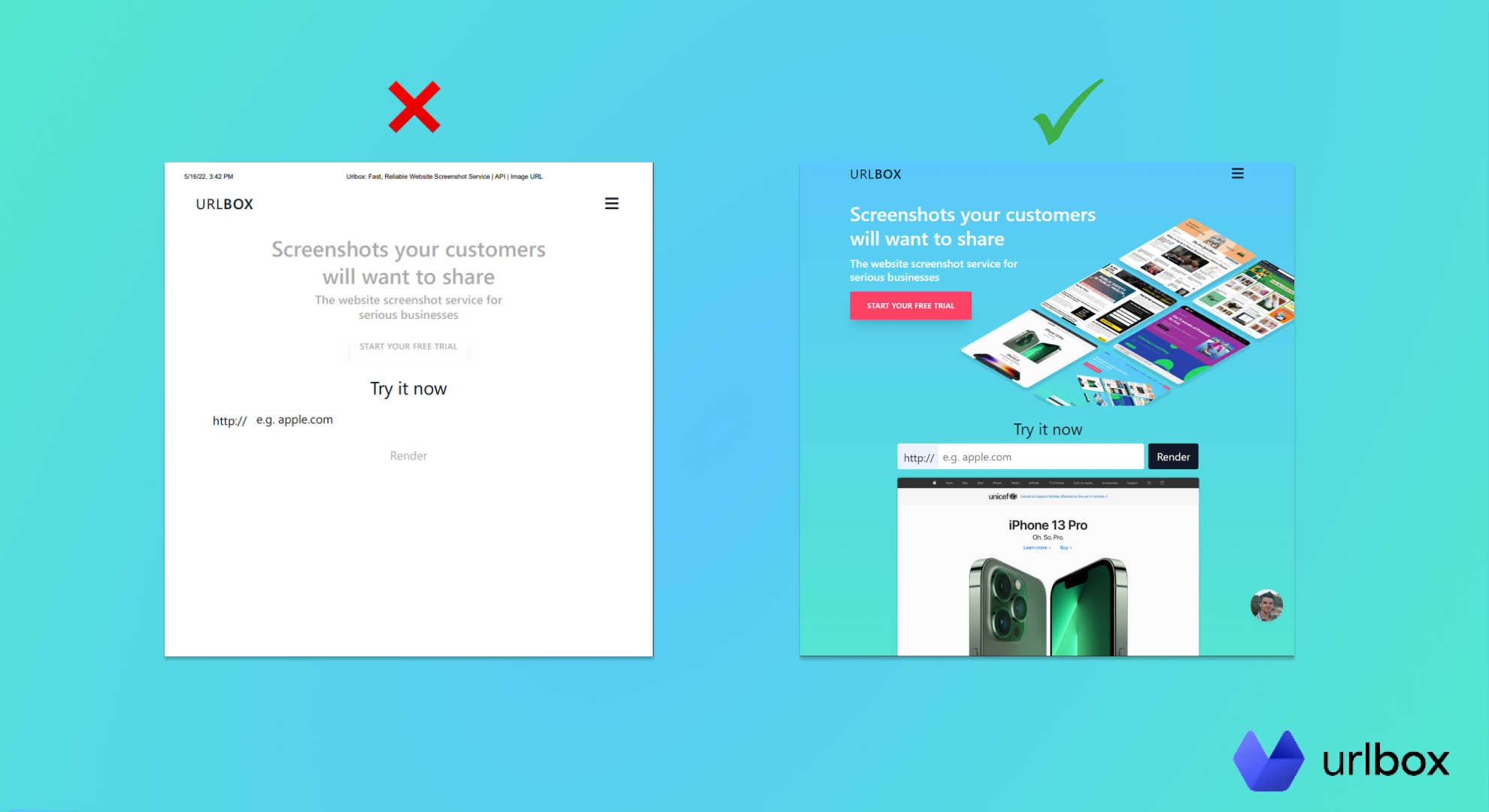 We handle the scaling, the hosting of the screenshot images and PDFs, and we solve a lot of the edge cases that people will run into, such as blocking ads and cookie banners automatically.