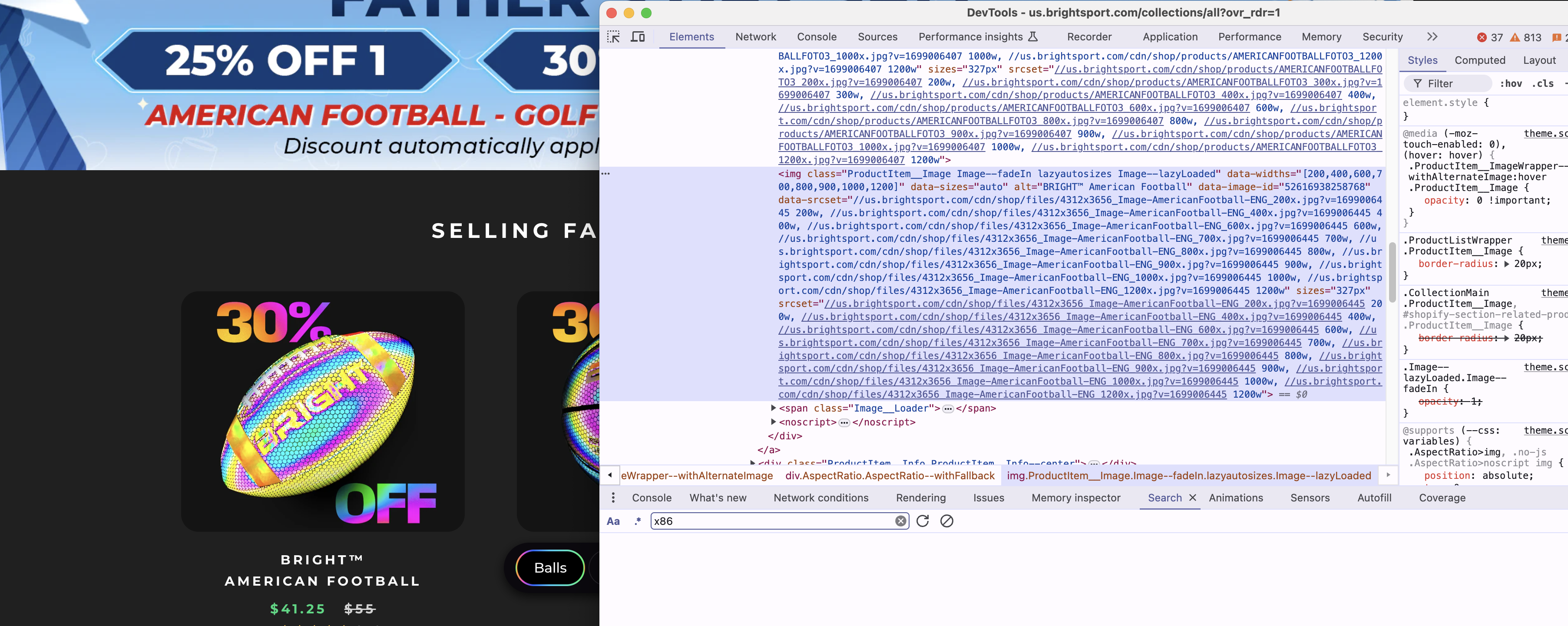 Intrigued to find out what is preventing these pesky images from showing, I crack open the devtools in a regular chrome browser and take a look at the html of the images.
