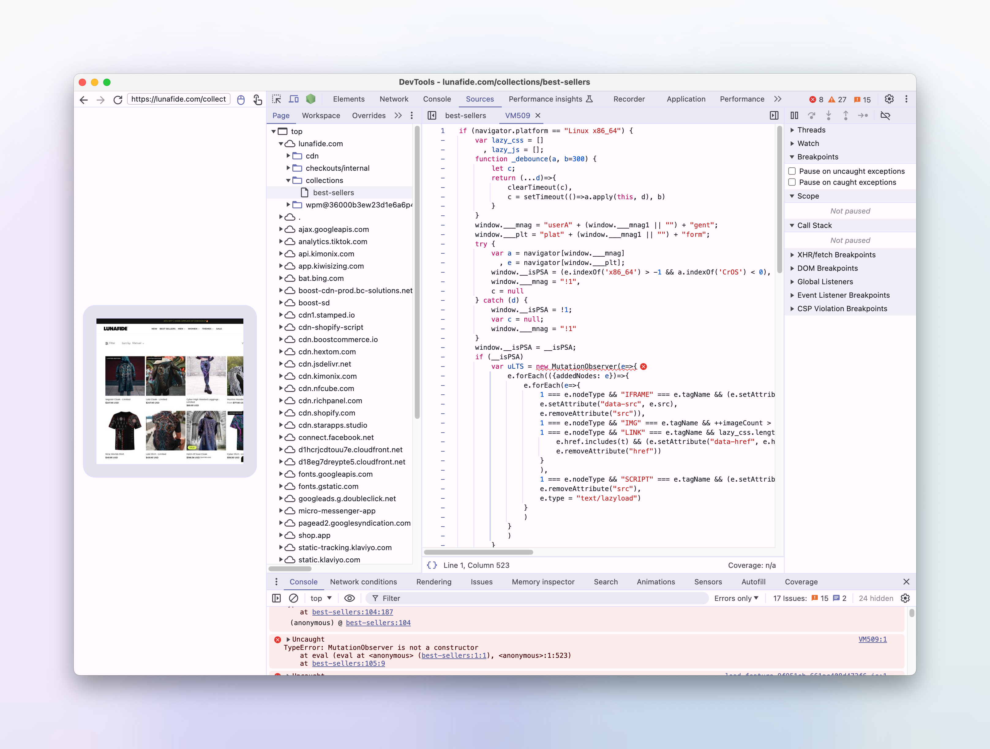 - Trying to prevent the loading of subsequent resources using the Yett library or MutationObserver directly.