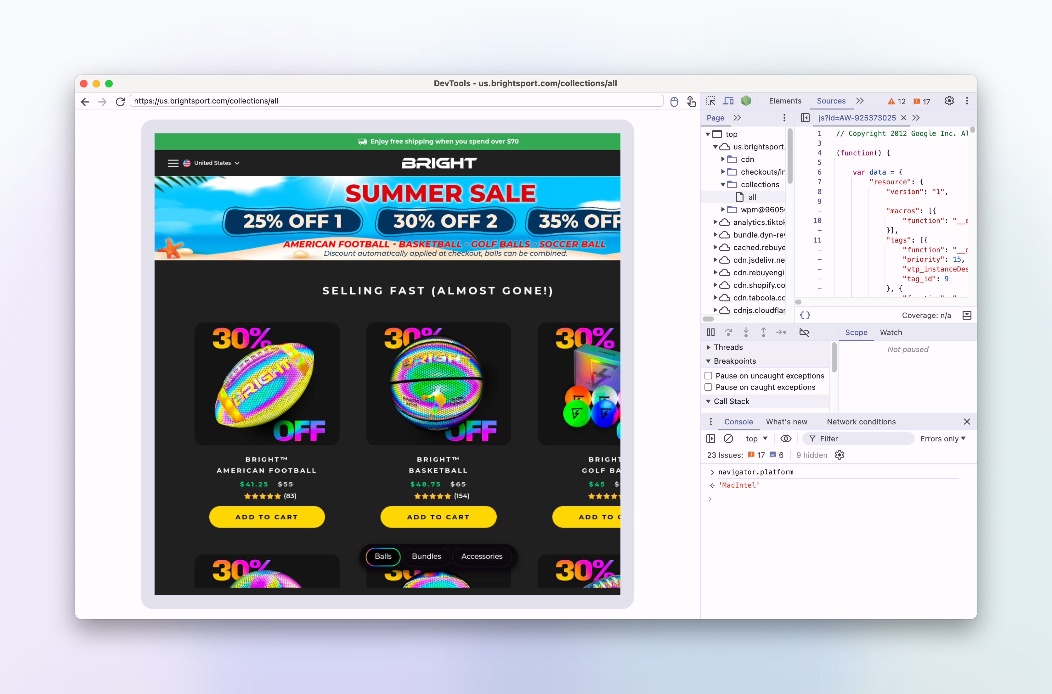 We can now test the fix on the other shopify site that the customer reported was having a similar loading issue. We'll set the navigator.platform to Linux x86_64 and re-run the screenshot request: