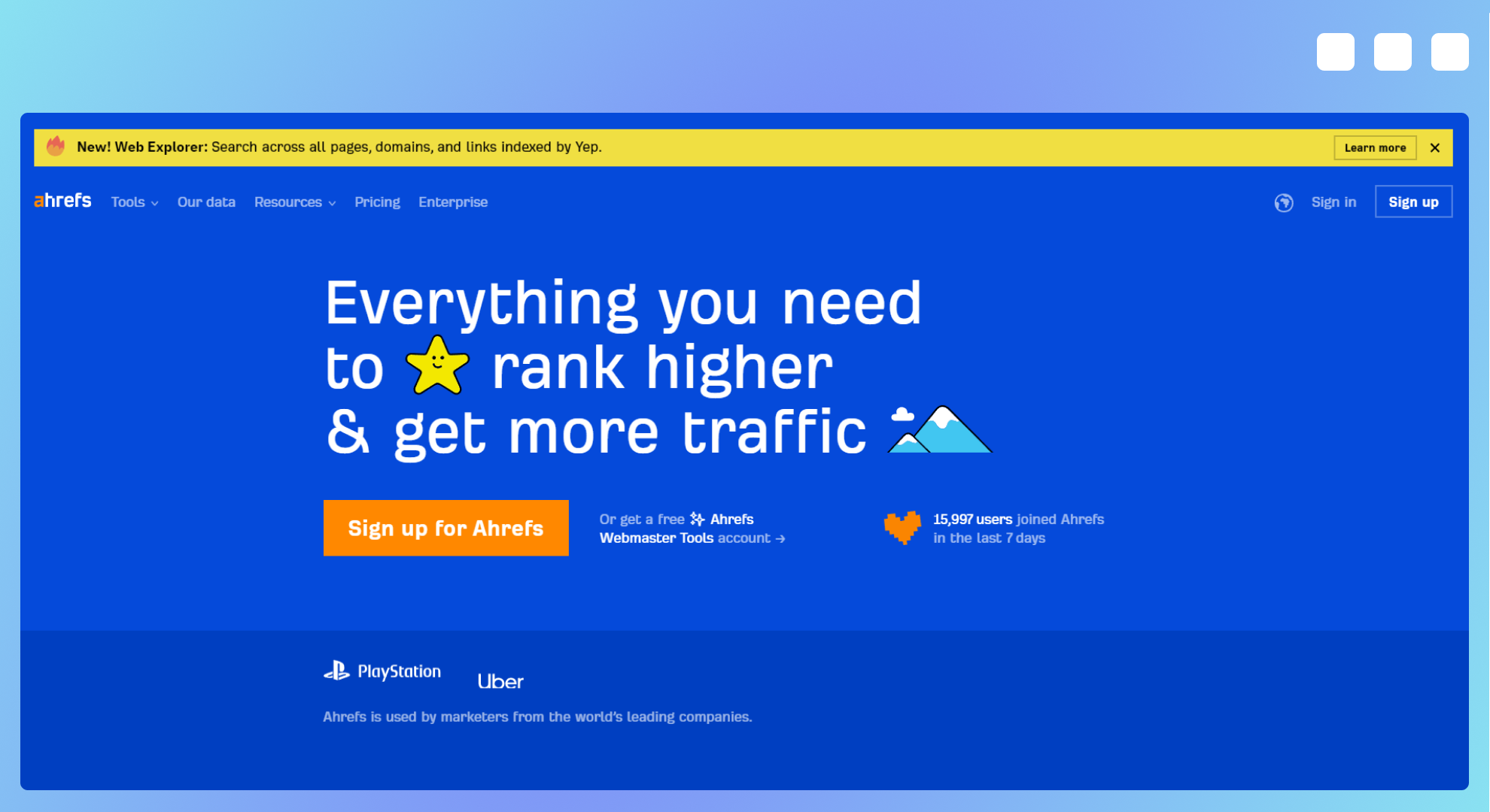 Ahrefs boasts a database of 8 billion keywords and 421 billion indexed pages. It has an intuitive user interface with plenty of features, such as link building, website audit, content research, and mention monitoring, to help you manage your SEO campaign in one place. Additionally, you can connect it to Google Search Console for free.