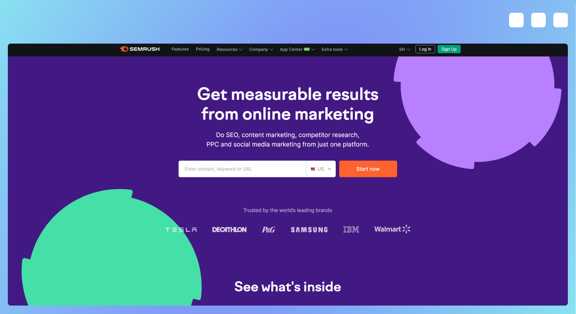 The platform monitors over 800 million unique domains and 21 billion keywords for 142 geo databases. Some users report that the data is more accurate than Ahrefs. You can use its features to support SEO, content marketing, competitor research, PPC, social media marketing, and more.