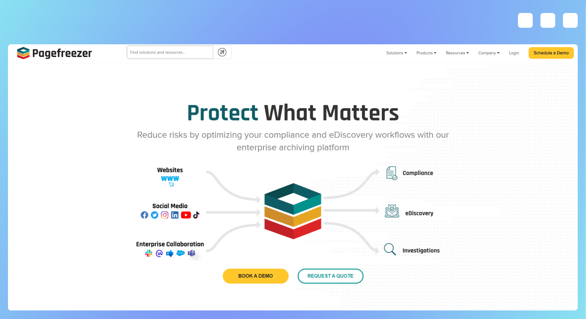 - Website and social media archiving: Pagefreezer is a robust data archiving tool capable of capturing and preserving dynamic web and social media content, if you need to comply with regulatory requirements and save content as legal records.