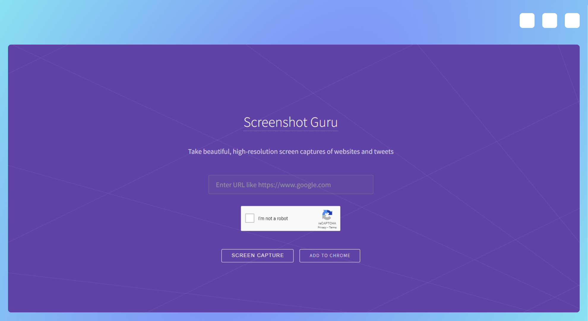 - No Software or Extensions Needed: You don't need any screen-capture software or browser extensions to capture screenshots with Screenshot Guru.