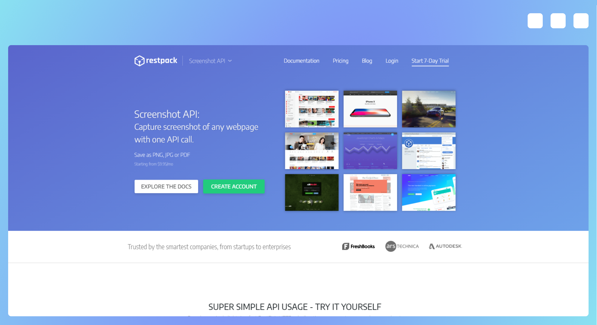 The screenshot service API is designed with developers in mind, offering multiple render modes, various input and output formats, powerful blocking options, and optimized rendering features. Try it for free for 7 days.