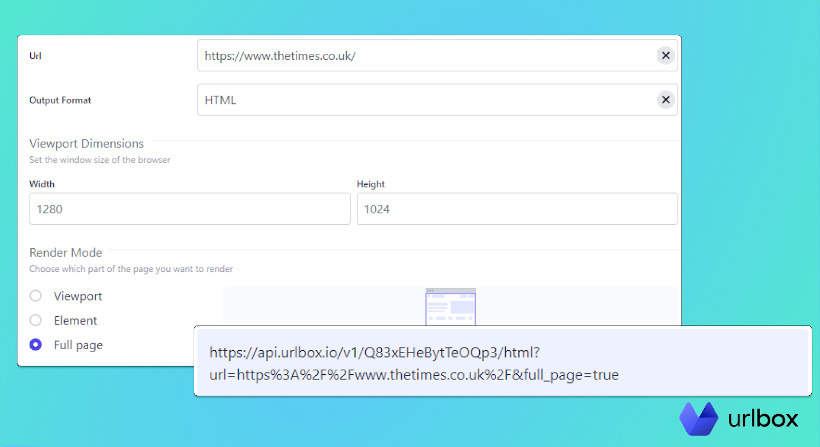 You can configure Urlbox to screenshot your website at certain time intervals automatically. Then you can send the files to Amazon S3 for that extra layer of security. These screenshots can be exported in different file formats, such as PNG, JPEG, or PDF, but the great thing about Urlbox is that it also lets you save them as HTML files.