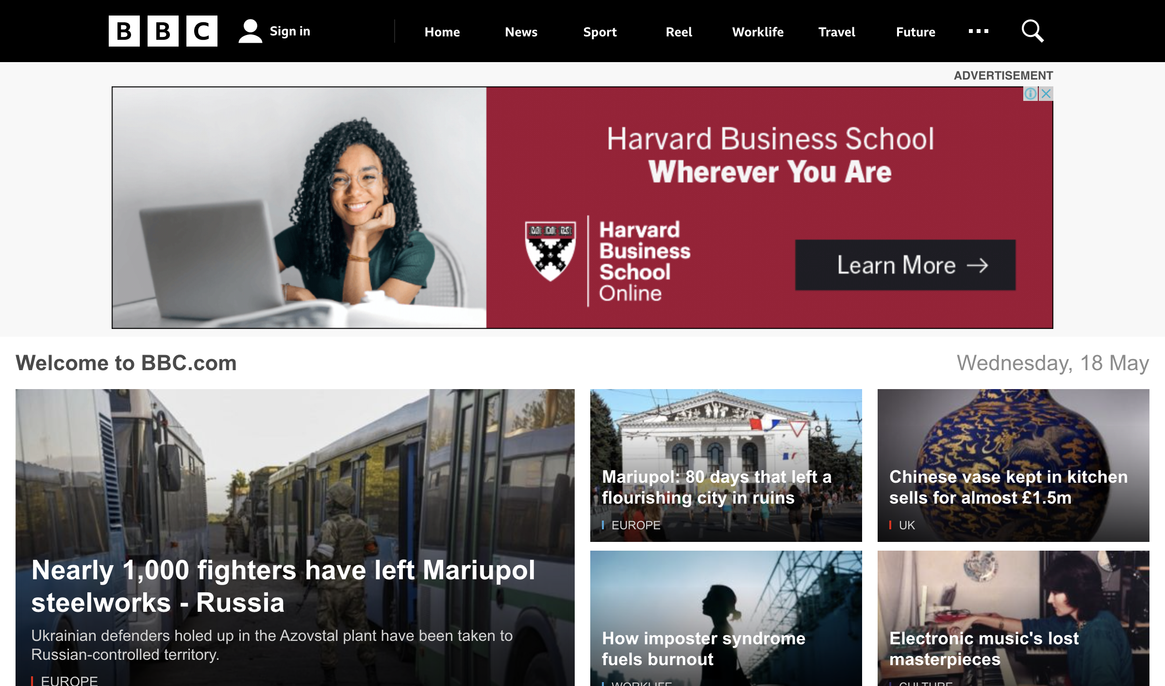 This is a decent screenshot of the BBC website, but you can see that an ad was captured as well. While this screenshot looks fine, taking a screenshot of a scrollable page would be tricky using Selenium, as would getting an effective screenshot of a page that had pop-ups, cookie banners, or ads that obscured some of the content.